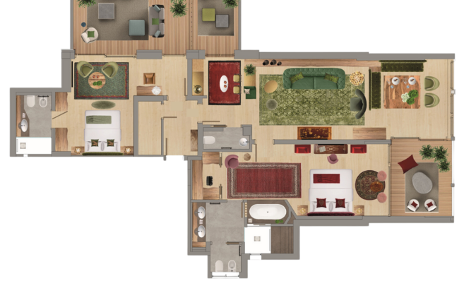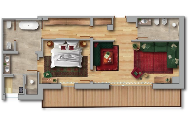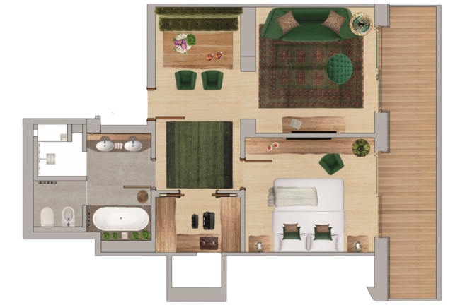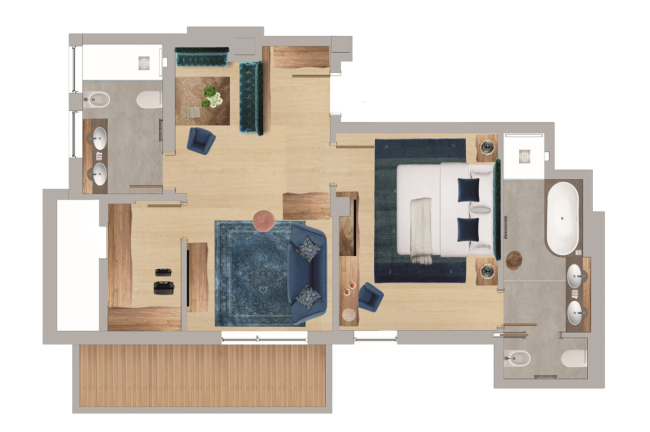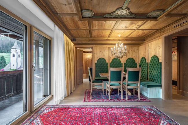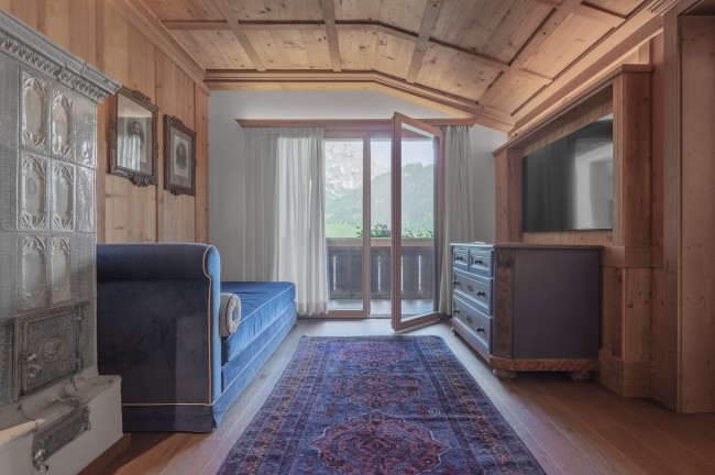 So geräumig, so harmonisch! Die 120 qm große Suite Dolomites befindet sich in der obersten Etage. Schönheit, Ruhe, Heiterkeit, Wärme und Gemütlichkeit verbinden sich hier zu einer ganz besonderen Wohlfühl-Atmosphäre.
